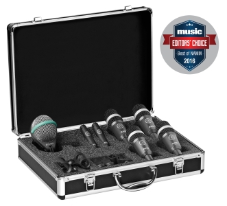 The AKG Concert 1 Drum Microphone Set is composed of 7 premium microphones with maximum SPL handling for touring, live performance, and studio recording, complete with a travel ready, durable travel case. It is ready to plug and play and capture a complete drum kit, or to mic your bass and guitar amps, percussion, woodwinds and other instruments, with five dynamic and two condenser microphones plus all clamps and stand adaptors. The full range of microphones includes:
