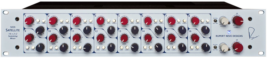 The 5059 features 16 channels with individual level, pan, inserts, stereo-2 sends, and master texture controls, providing easy integration with outboard equipment, complete control for two separate stem mixes, and the ability to dial in analogue mojo in two modes. With the same sonic heritage as mixers used to create countless hit records, the 5059 Satellite Mixer imbues tracks with the legendary warmth and presence of a Rupert Neve design.