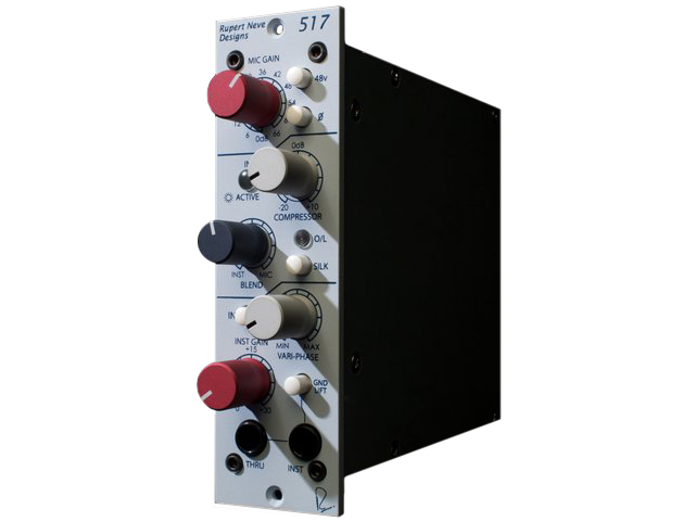 Based on the Portico 5017 Mobile Pre, the 517 provides world class, transformer-coupled preamp, compressor and DI circuitry, with Vari-phase, Silk and DI/mic blending capabilities in a 500 series model. As the first 500 series module designed by Mr. Rupert Neve, the 517 incorporates outstanding sonic quality with an indispensable feature set.