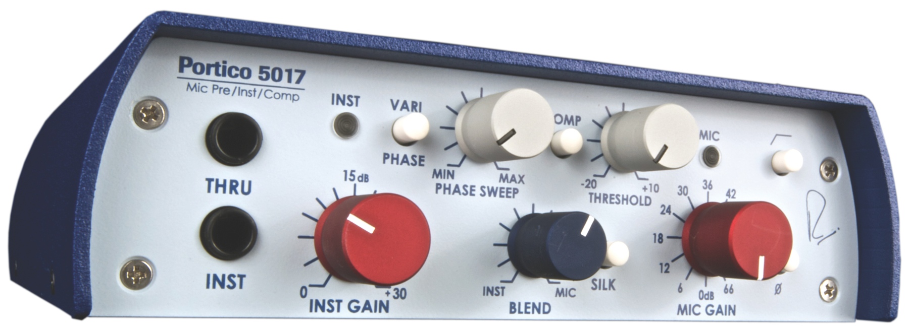 In another stroke of genius, Rupert Neve Designs gave the Portico 5017 a blend control. This can be used to combine and compress direct and amplified signals, both live or in the studio. You can use the blend control in conjunction with the variphase control to have access to the best of both worlds: perfectly phase-aligned DI'd and miked signals for your tracks. Bassists, your new studio channel is right here. In addition, the Portico 5017 features compression (which can easily be added to the miked or DI'd signal) as well as vintage-style sound courtesy the "Silk" control. If you're hungering for vintage vibe in a reasonably priced desktop unit, it's right here: the Rupert Neve Designs Portico 5017.