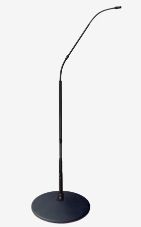 The FlexWand™ is a combination of a 30kHz High Definition Microphone™ and a low profile microphone stand and boom as a single unit. It allows the microphone head to be positioned as high as 4.7 feet and as low as 10 inches from the floor or anywhere in between. There are no visible wires or cables above floor level. Visually it is low profile, smooth, sleek and clean. The FlexWand™ is the ideal solution for applications where the utmost in sound quality and a low profile is required. Now you don’t have to find a mic, attach the mic clip to the stand and then dress the cable around the stand. Just pick up the FlexWand™, position it and plug the mic cable into the base.