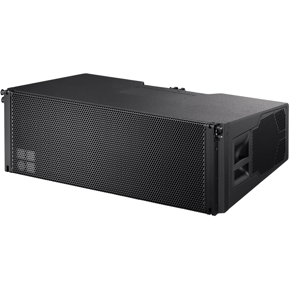 The KSL8 line array module produces an 80° constant directivity dispersion pattern in the horizontal plane over the entire operating bandwidth. The KSL8 houses two 10" neodymium forward facing LF drivers and two side firing 8" neodymium LF drivers. A coaxial mid-high section contains an MF horn with an 8" driver and two 1.4" exit, 3" voice coil HF compression drivers mounted to a dedicated wave shaping device. SL-Series flying hardware comes with a patended workflow with integrated tension and compression rigging modes, allowing splay angles between cabinets from 0° to 10° in 1° increments. The loudspeakers are driven actively by two channels of an appropriate d&b amplifier. One channel powers the 10” LF drivers, the second channel powers all other components, which are passively crossed-over. This component geometry allows for a smooth crossover design with well-defined overlaps between adjacent bands providing consistent, even and very accurate horizontal dispersion. Due to the arrangement of the front and side firing LF drivers, seamless directivity control is maintained from the lowest frequencies the loudspeaker produces to above 18 kHz. Further expanding flexibility and catering for applications where smaller arrays are used and ArrayProcessing is not required, the KSL8 includes the option to link two cabinets in Line or Arc mode. The cabinets are constructed from marine plywood and have an impact and weather protected PCP (Polyurea Cabinet Protection) finish. The front and side panels incorporate rigid metal grills backed by an acoustically transparent and water repellent fabric. Each side panel incorporates a recessed handle, with additional handles provided at the rear.
